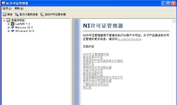 9.開始菜單-->所有程序-->NationalInstruments-->NILicenseManager(這是NI許可證管理器)-->選項(xiàng)-->安裝許可證文件-->選擇第7步生成的許可證-->關(guān)閉窗口。