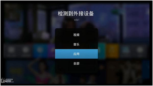 下面以天貓魔盒為例演示用U盤安裝 將U盤插入盒子,系統(tǒng)自動(dòng)彈出以下界面,選擇“應(yīng)用”