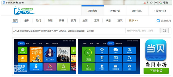 2.打開(kāi)百度搜索 “當(dāng)貝市場(chǎng)”或者在瀏覽器地址欄直接輸入 http://down.znds.com/。