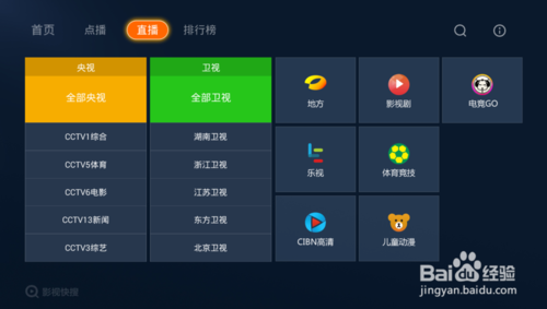 2.打開(kāi)后,在直播版塊中,可尋找你想收看的電視臺(tái)直播頻道