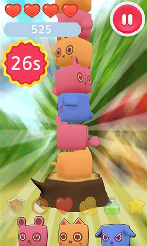 魔方們歡樂(lè)地疊高高,您只需要點(diǎn)擊最下方魔方相同顏色的按紐,即可消除。