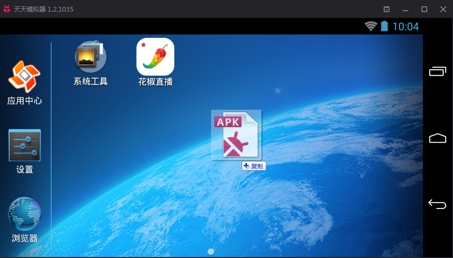 3、將下載好的安卓APK文件,直接拖拽到天天模擬器桌面,自動開始安裝。