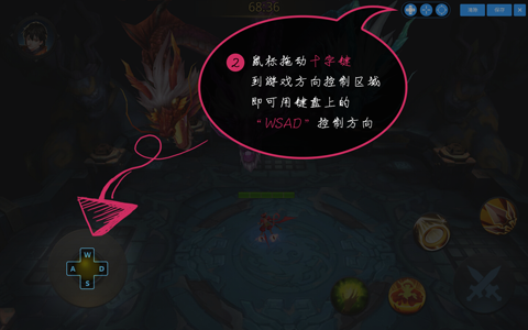 2、鼠標拖動右上角的十字架方向鍵到游戲的搖桿按鈕處。
