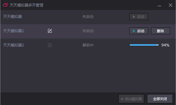 3、添加了2個模擬器,點擊“啟動”即可雙開或多開了。