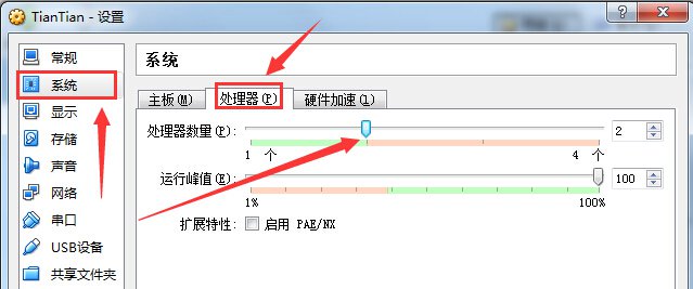 打開控制臺后右鍵點擊TianTIan選擇設置,打開設置后選擇系統(tǒng)-處理器,將處理器數(shù)量設置為2個