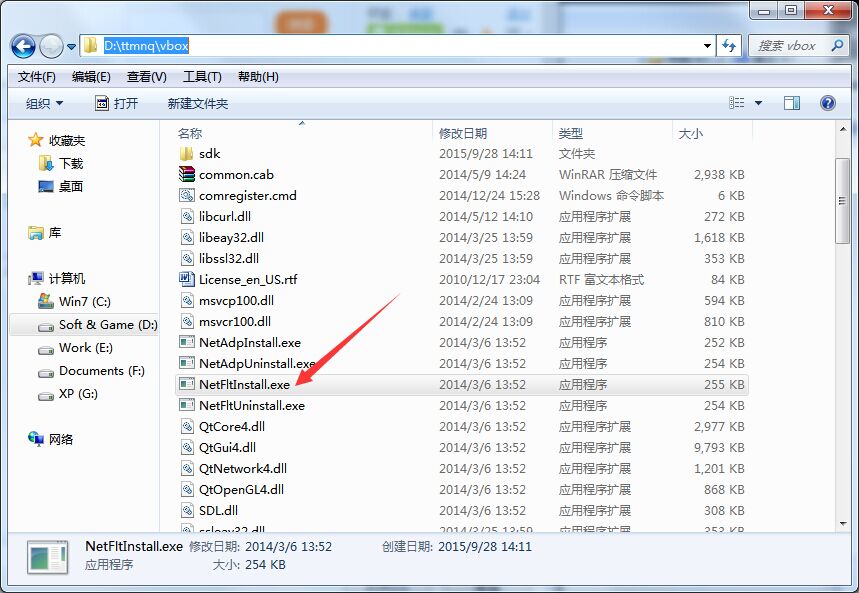 1、打開天天的安裝目錄(默認D:\ttmnq\),vbox目錄,運行netfitinstall.exe