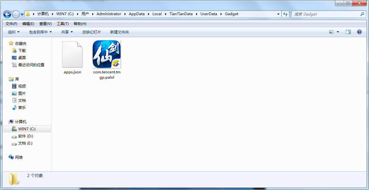 C盤(你的系統(tǒng)盤):\Users\(你的賬戶名)\AppData\Local\TianTianData\UserData\Gadget