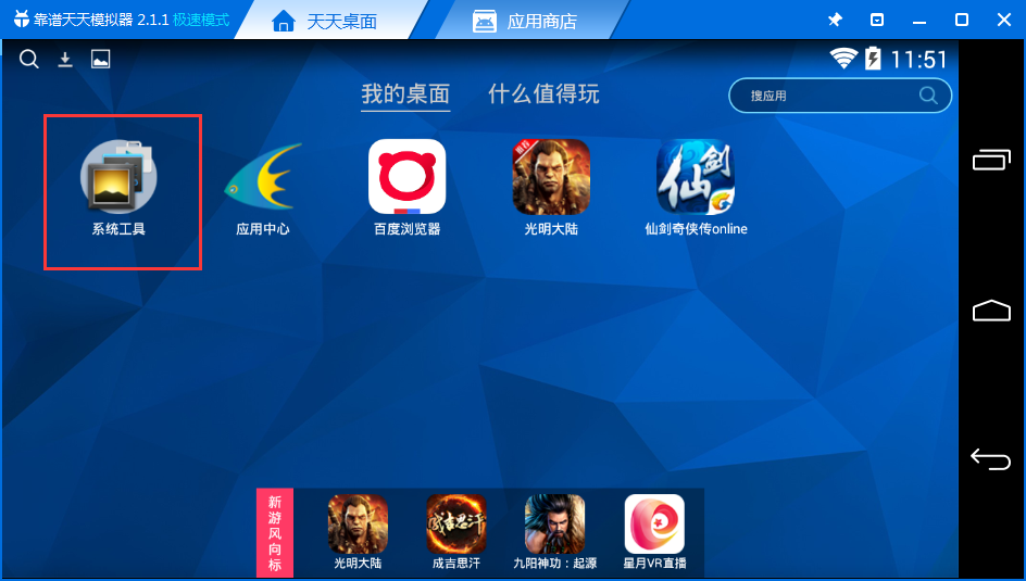 3、另外我們還可以在天天模擬器上刪除這些文件。我們先打開天天模擬器,然后在主界面找到“系統(tǒng)工具”;