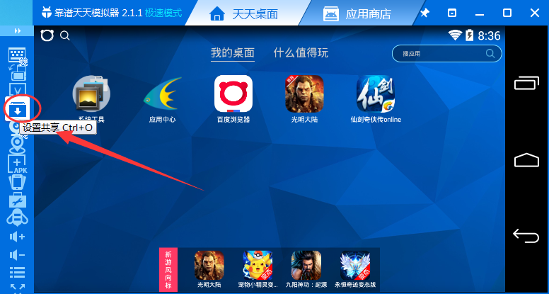 方法一:使用天天模擬器自帶的共享功能