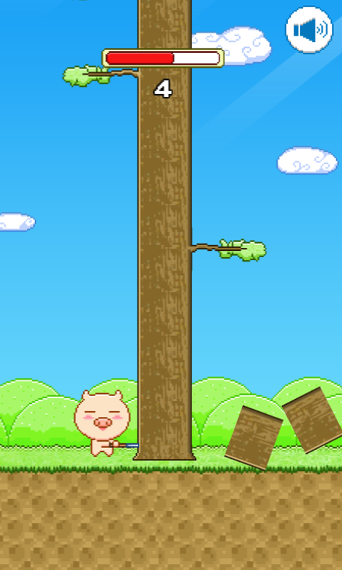 瘋狂伐木豬是一款考驗手速與眼力的休閑游戲,控制小豬點擊屏幕左右砍樹,不能碰到樹枝,游戲玩法簡單,得到高分需要一定的技巧。
