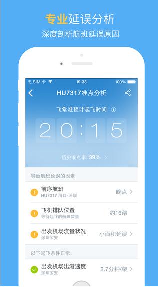 2.延誤分析:提供最專業(yè)的延誤分析,深度剖析航班延誤原因。