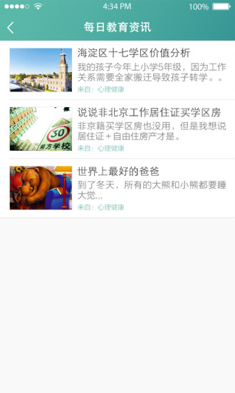3.資訊內(nèi)容涵蓋國家教育相關(guān)政策及解讀、教育領(lǐng)域熱點(diǎn)話題(如新的教育理念、教育中存在的難題、校園事件等)、招考信息、學(xué)校信息等方方面面。為家長用戶在進(jìn)行孩子教育相關(guān)的決策時提供一定的知識儲備和參考依據(jù)。