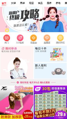 1、勁爆促銷:限量搶購(gòu)、2件8折、9塊9包郵、新人專享、優(yōu)惠券等,優(yōu)惠多多