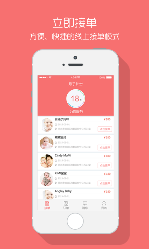 月子護(hù)士是一款服務(wù)工具,專門為兼職護(hù)士與“坐月子”產(chǎn)婦提供信息對接的移動產(chǎn)品。月子護(hù)士為各大醫(yī)院產(chǎn)科、兒科的護(hù)士們提供兼職機(jī)會,她們注冊成為會員之后,利用業(yè)余時間,為工具平臺上的產(chǎn)婦提供一對一專屬服務(wù)。產(chǎn)婦也可以通過這個服務(wù)工具平臺,尋找到心儀的專業(yè)護(hù)士,產(chǎn)婦享受孕產(chǎn)護(hù)理、新生兒護(hù)理、產(chǎn)后康復(fù)等,還可以參與各類線下活動等等。月子護(hù)士是和樂網(wǎng)絡(luò)信息科技(北京)有限公司榮譽(yù)出品。