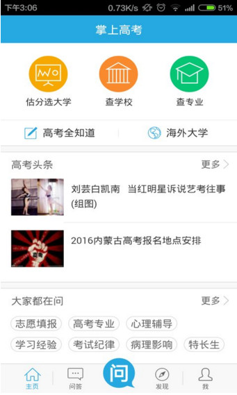 專家高校在線答疑:掌上高考邀請眾多國內(nèi)高考專家免費在線答疑,為您提供專業(yè)的志愿填報,高考專業(yè),考前心理輔導(dǎo)等相關(guān)服務(wù)。同時也會定期邀請高校舉辦在線答疑活動,拉近您與大學(xué)招辦的距離。