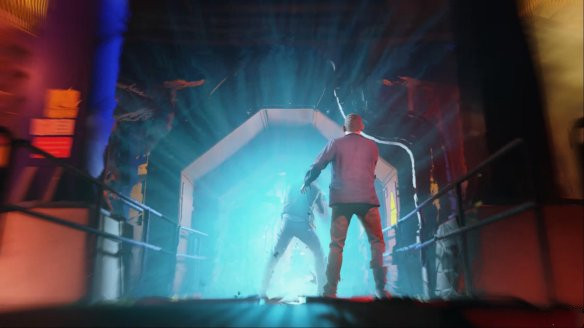 上了二樓,可以跟銀幕進行互動。在銀幕前,保羅大致介紹了一下他們的成果。利用黑洞讓時空扭曲,最終達到時空穿梭的目的。這就是長廊計劃,他們企圖征服時間。而且?guī)缀跻呀?jīng)成功了。