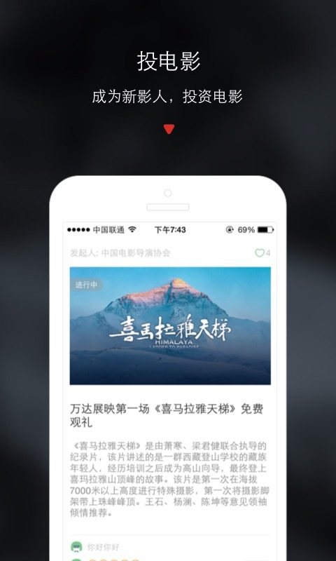 新影人app是專為電影投資打造的應(yīng)用,能隨時(shí)查看各種電影產(chǎn)品,在線進(jìn)行投資,擁有和明星見(jiàn)面機(jī)會(huì),能享受電影票房收益分紅,更有各種電影資訊查看,是您投資電影事業(yè)的好幫手。