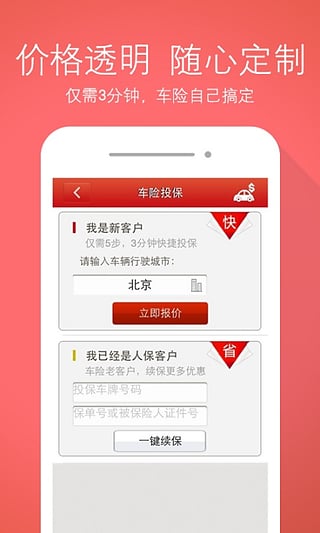 “中國人?!笔謾C客戶端是亞洲最大的財產(chǎn)保險公司——中國人保財險的官方應(yīng)用。為您提供最好的保險服務(wù)以及汽車保險生活、旅游保險生活以及家庭保險生活的全方位保障。車險私人定制、手機購險、一鍵續(xù)保以及行車貼士、車輛保養(yǎng)讓您的汽車保險生活更加輕松;國內(nèi)旅游險、國際旅游險、自駕旅游險等讓您的旅游生活暢玩無憂;寵物險、熊孩子險、美滿e家組合讓您的家庭生活更加美滿。13000家網(wǎng)點,十萬以上專業(yè)服務(wù)團隊,無時無刻在您身邊的保險,隨時隨地握在手心里的保障。中國人保專注保險65年,做中國最好的保險客戶端。