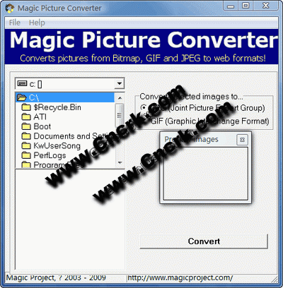 Magic Picture Converter V1.3 英文綠色特別版 Magic Picture Converter 可以轉(zhuǎn)換 BMP,GIF 和 JPG 圖片格式為大多數(shù)流行的網(wǎng)絡(luò)格式。該轉(zhuǎn)換過(guò)程采用批量模式,這意味著你可以單擊轉(zhuǎn)換一個(gè)文件夾當(dāng)中的所有圖像。原始圖像不會(huì)被覆寫以便以后進(jìn)行編輯之用