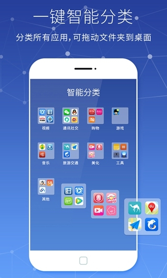 精確的智能分類算法,快捷幫你整理好亂亂的應(yīng)用圖標(biāo),還可以添加到桌面,進(jìn)行個性化的整理。