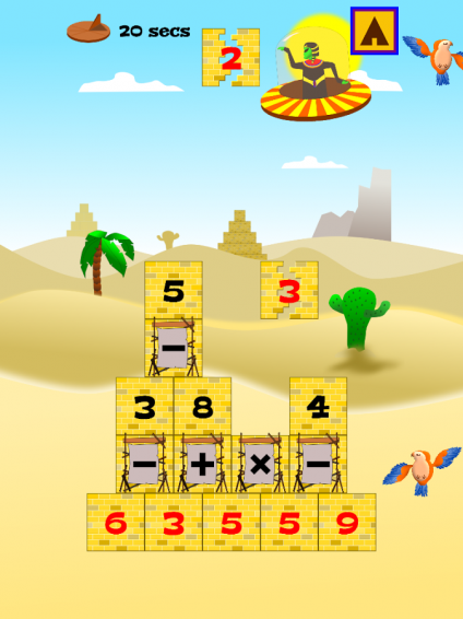 《數(shù)字法老 Number Pharaoh》是一款休閑游戲,古埃及的法老正在監(jiān)督人們建造金字塔,使用加減乘除進行運算,創(chuàng)造更高一層的金子塔,最終得到金字塔頂端的數(shù)字即可獲勝。