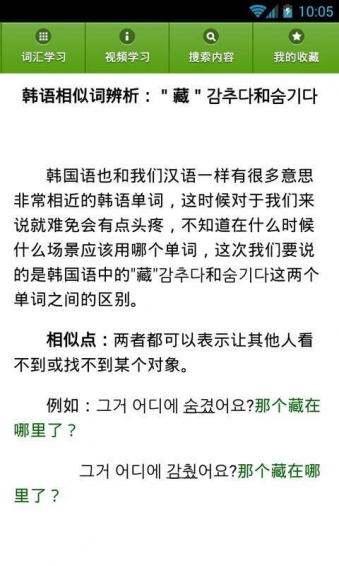 韓語背單詞是一款學習韓語專用的手機app,在韓劇的流行的當下,不學點韓語怎么行,韓語背單詞可以讓你從零基礎韓語開始學起,為你提供簡單易學的韓語詞匯速成方法,讓你背的輕松,還有一些小課堂知識點講解,進步更是飛快!