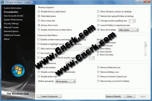 您的位置:起點(diǎn)軟件下載電腦軟件系統(tǒng)軟件Ultimate Windows Tweaker(Vista系統(tǒng)優(yōu)化) V2.2 英文綠色免費(fèi)版