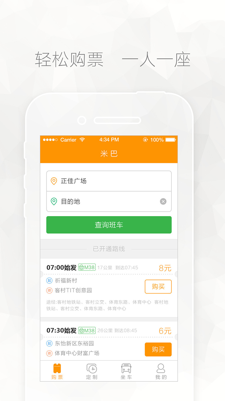 米巴app是一款便捷的出行服務(wù)應(yīng)用。當用戶出行需要班車的時候,打開米巴app,填入自己的出發(fā)地和目的地以及乘車時間,米巴app即會自動為用戶進行安排,提供私人專屬路線,省時又省力。