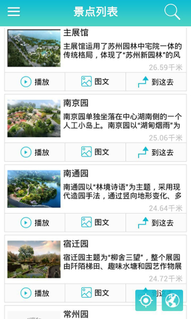 蘇州園博會app是一款服務(wù)于第九屆江蘇園藝博覽會的智能導(dǎo)覽系統(tǒng),為游客提供智能化的自助服務(wù),通過手機和后臺中央數(shù)據(jù)庫所形成的網(wǎng)絡(luò)控制系統(tǒng),以語音播放等方式將旅游園區(qū)的服務(wù)和景點內(nèi)容傳遞或展現(xiàn)給游客。讓游客在園區(qū)內(nèi)能夠通過自己的手機在園區(qū)內(nèi)快速獲取幫助,不僅可以進行GPS定位來了解自身所處位置,以及周邊服務(wù)設(shè)施,還可以了解當(dāng)前景觀的來龍去脈和文化底蘊,從而給游客帶來全方位的體驗。【功能說明】