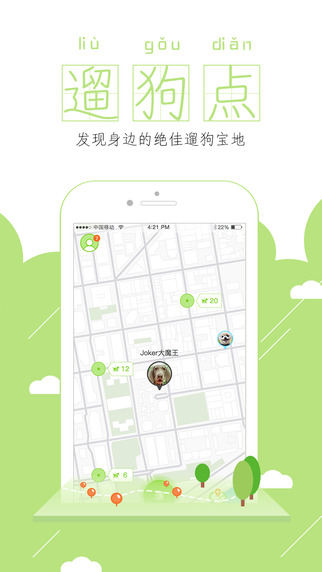 附近狗狗:實時顯示附近正在遛的狗狗,幫您的狗狗找到合適的小伙伴。