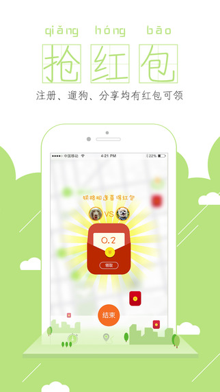 紅包系統(tǒng):成功登錄、到達(dá)遛狗點、遛狗均可領(lǐng)紅包,快來攢紅包換寵物用品吧。