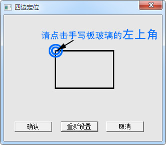 按照界面提示分別選擇手寫區(qū)域(玻璃板的手寫范圍以玻璃為手寫區(qū)域,電磁板請以黑色方框為手寫區(qū)域)的左上角、左下角、