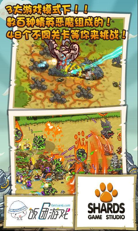 1.游戲設(shè)計(jì)3大種族、10類兵種、12個(gè)英雄、15種手動(dòng)技能、573種自動(dòng)技能。組成玩家自己喜歡的戰(zhàn)術(shù)來(lái)應(yīng)對(duì)由5個(gè)惡魔BOSS領(lǐng)導(dǎo)的數(shù)百種形態(tài)各異惡魔組成的死靈軍團(tuán)進(jìn)攻。