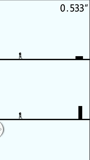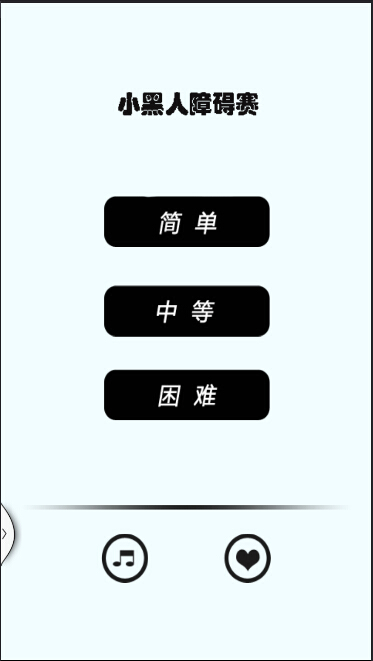 這是一個(gè)類似跨欄運(yùn)動(dòng)的小游戲,小黑人在不停的奔跑,前面會(huì)有高度不等的障礙物,點(diǎn)擊屏幕小黑人會(huì)跳躍躲避障礙物,游戲有三個(gè)不同的難度,不同的級(jí)別小黑人個(gè)數(shù)不等,玩家可以根據(jù)自己水平選擇適合自己的難度,奔跑時(shí)間越長(zhǎng)就很厲害;