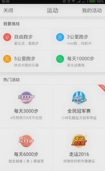 4、微博運動app直接嵌入在客戶端個人主頁的功能選項里,用戶點擊即可進入主界面;