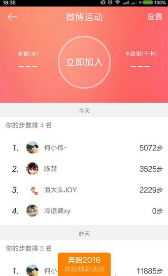 6、微博運動還有“活動任務”版塊,通過“活動任務”,用戶可參與明星和團體發(fā)起的健身活動。