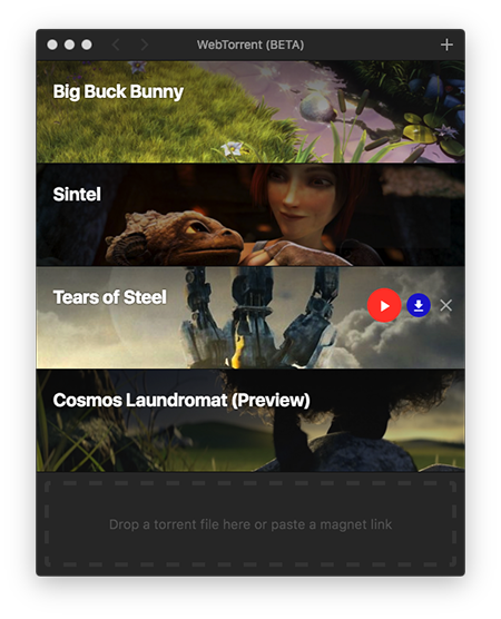 WebTorrent Mac版是Mac系統(tǒng)下的一款BT種子即時(shí)播放、下載軟件,有了WebTorrent Mac版你可以輕松在線觀看和下載BT種子。WebTorrent的界面非常簡潔美觀,軟件自帶4個(gè)測試文件,都是1080P高清的視頻,當(dāng)然,你也可以自己講BT種子文件拖入程序中下載。【軟件特色】