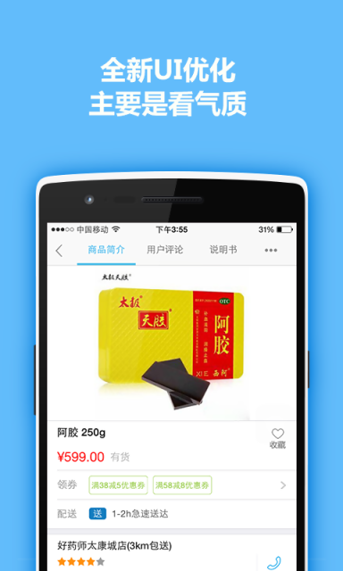 找不到藥店,找到藥店沒有藥,藥價(jià)不合理?醫(yī)院掛號流程繁瑣,購藥困難,藥價(jià)高居不下.那么問題來了,買藥就不能簡單一點(diǎn)嗎?從現(xiàn)在起,"好藥師”掌上藥店解決您所有購藥困擾.好藥師掌上藥店是全國最大民營現(xiàn)代醫(yī)藥分銷企業(yè)九州通醫(yī)藥集團(tuán)旗下移動(dòng)手機(jī)app,它是以醫(yī)藥o2o為依托的掌上藥品商城,致力于為消費(fèi)者提供專業(yè)的健康養(yǎng)生保健、家庭用藥、母嬰養(yǎng)護(hù)等各類解決方案,是您最貼心的健康管理平臺.