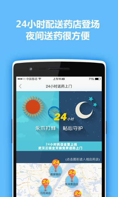 1、【一鍵定位】:精準(zhǔn)定位您身邊的藥店,提供便捷服務(wù).2、【藥品指南】:每款藥品均含功效及詳細(xì)說明書,可對癥找藥.