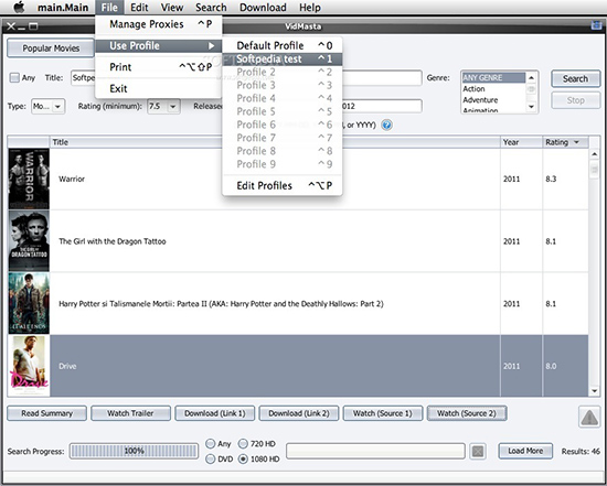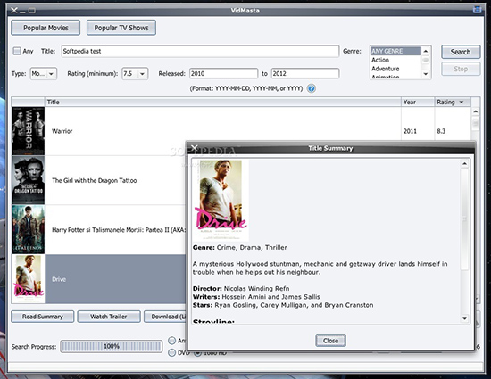 VidMasta Mac版是一款Mac OS平臺上的網(wǎng)絡(luò)視頻下載軟件,VidMasta Mac版能使用戶得到自己喜歡的電影或最新的電視節(jié)目情節(jié)的信息。用戶可以觀看或下載電影和電視,VidMasta Mac版的使用也非常簡單,在任何兩個鼠標點擊格式(錄像,電視,DVD,720i,720P,1080I,1080P)標題。第一次點擊是點擊搜索按鈕。第二次點擊是打表,或下載按鈕。【功能介紹】