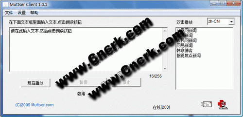 語音新聞播報(bào)(Muttser)客戶端是一款采用語音(TTS)技術(shù)進(jìn)行每日新聞播報(bào)的軟件,軟件會(huì)自動(dòng)獲得新浪,網(wǎng)易等網(wǎng)址的新聞信息,自動(dòng)進(jìn)行循環(huán)播放.,它的設(shè)計(jì)理念在于讓語音轉(zhuǎn)換更快捷, 無需在本機(jī)安裝任何語音庫或者語音系統(tǒng)