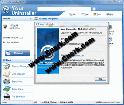 利用Your Uninstaller! ,你可以輕松查看到各種工具軟件的卸載信息,根據(jù)卸載信息的提示,可以知道哪些程序可以被徹底地卸載;除了具有卸載功能外,該程序還具有啟動(dòng)程序管理功能,利用該功能你可以自定義各種需要隨計(jì)算機(jī)系統(tǒng)一起啟動(dòng)的應(yīng)用程序;此外,為方便你使用鼠標(biāo)右鍵,該工具還新增了IE上下文菜單管理功能,利用這個(gè)功能你能提高計(jì)算機(jī)的操作效率。