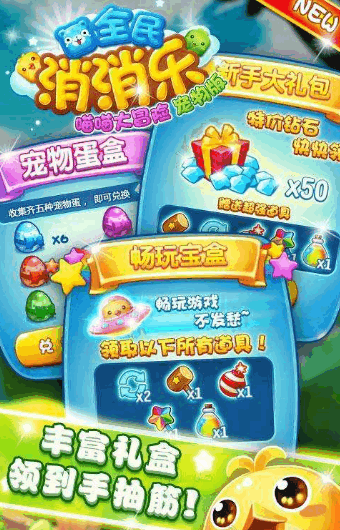 游戲在傳統(tǒng)對對碰玩法的概念上加入了收集尋寶、戰(zhàn)斗挑戰(zhàn)的元素,還有關(guān)卡模式等勛章成就內(nèi)容供玩家挑戰(zhàn)。藏寶圖記錄了散落在這個(gè)世界上的寶藏,這些寶藏將伴隨玩家走過游戲的每一個(gè)角落游戲界面全部寵物化,各種各樣可愛的寵物來襲,讓你一次萌個(gè)夠!