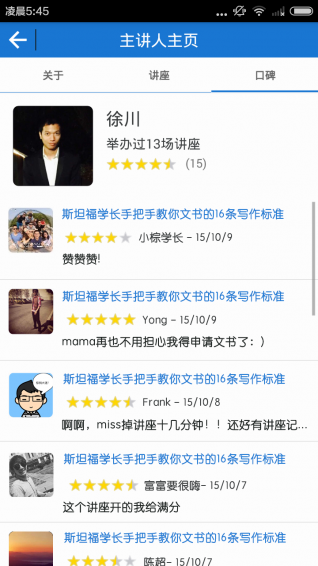 1.講座主題包含美國頂尖名校申請,托福,GRE,GMAT,SAT,AP,留美職業(yè)規(guī)劃,留學生活等相關領域?,F(xiàn)在已有超過1500名來自美國頂尖高校的導師注冊成為小板凳用戶,他們將問您呈現(xiàn)最全面最真實的經(jīng)驗交流及互動講座。