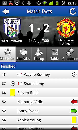 -livescores提醒-比賽統(tǒng)計(jì)(陣容,統(tǒng)計(jì),目標(biāo),卡,處罰,錯(cuò)過(guò)了點(diǎn)球,幫助和替換)