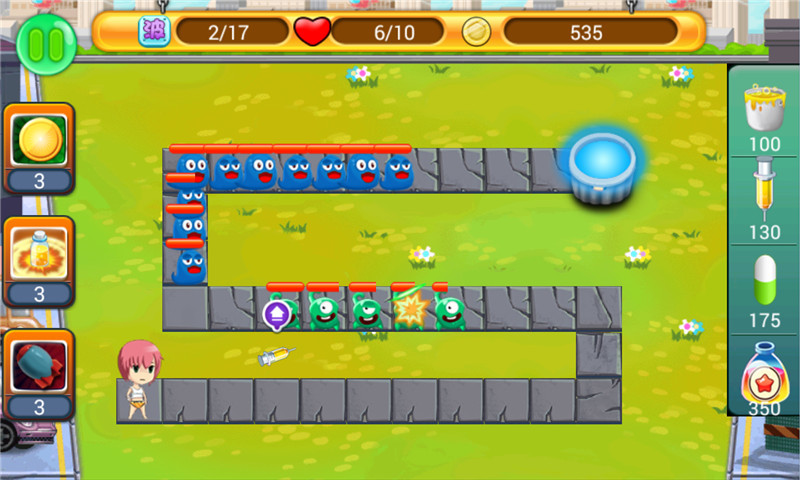 萌妹紙大戰(zhàn)禽流感是一款休閑好玩的策略塔防手游。在該游戲中,玩家將化身成一位可愛的萌妹子,用手中的藥丸針筒去消滅那些禽流感病毒,防止它們的肆意侵略。