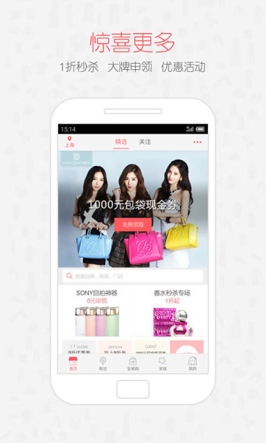 1.北上廣500+商場(chǎng)7000+品牌25000+門(mén)店,定位你所在或最近的商圈、品牌、商場(chǎng)動(dòng)態(tài),最新最全最準(zhǔn)皆在手中,讓逛街不再走冤枉路、花冤枉錢(qián)。2.全城購(gòu),專(zhuān)柜正品,到店體驗(yàn)試穿,不滿意不付錢(qián)!優(yōu)惠下單現(xiàn)場(chǎng)提,我們就是讓你辣么任性的購(gòu)物!
