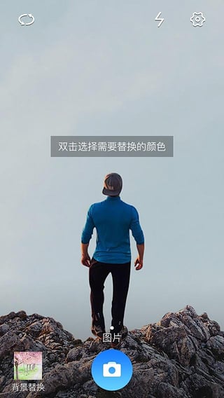1.站在一個純色的背景前,雙擊屏幕~叮~純色背景輕松被替換!再次雙擊可以取消替換哦~