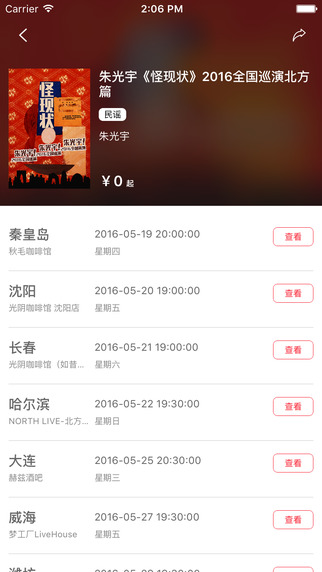 你可以隨時(shí)隨地找到各地各種類型的演出活動(dòng),包括流行、搖滾、民謠等類型的音樂(lè)。演出城市已覆蓋將近200個(gè),熱門(mén)演出城市一網(wǎng)打盡。在樂(lè)童找到同好,一起購(gòu)票去欣賞音樂(lè)人的才華吧!