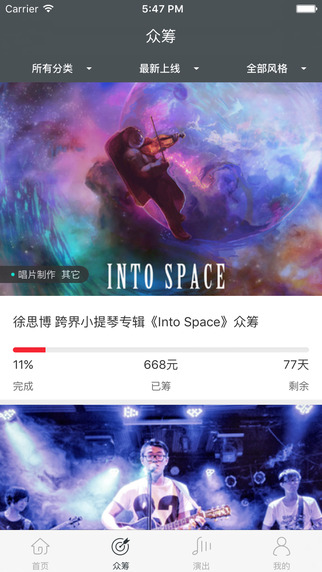 1、發(fā)現(xiàn)音樂(lè)眾籌項(xiàng)目,支持夢(mèng)想